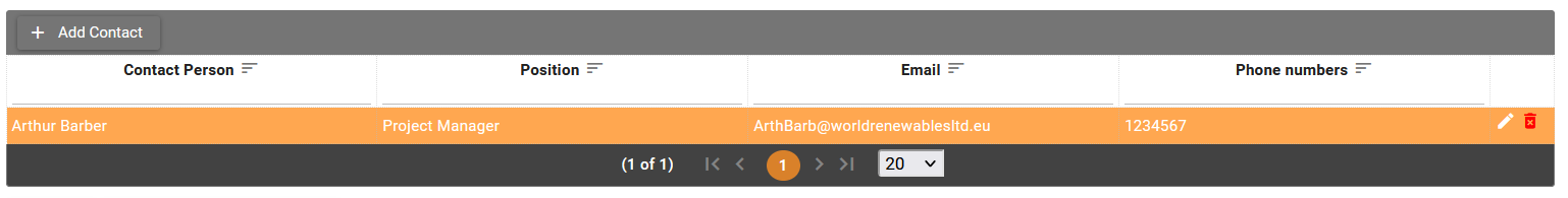Also add at least one contact person for the project.