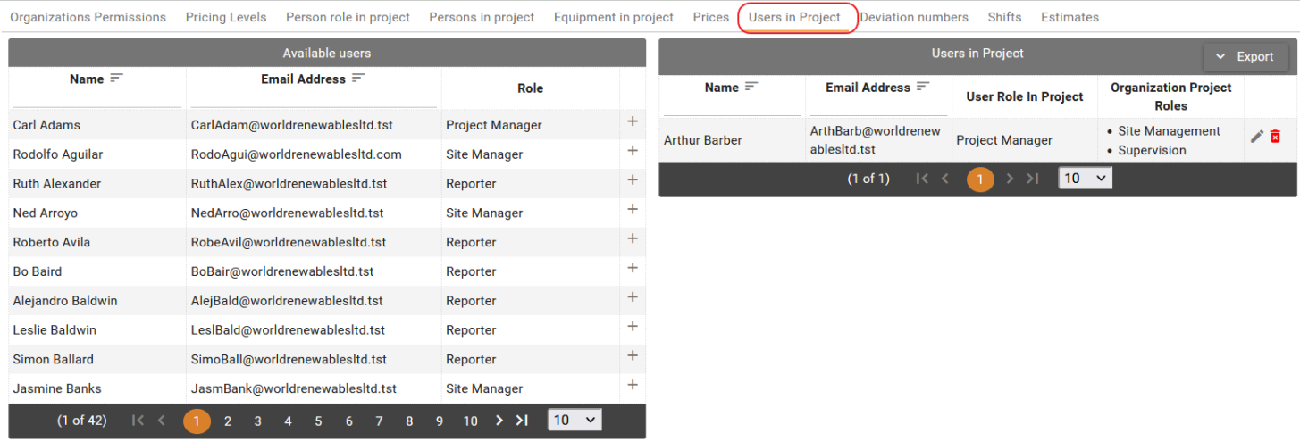 - Go to Users in Project tab and add the users. For more details see Users in project section.