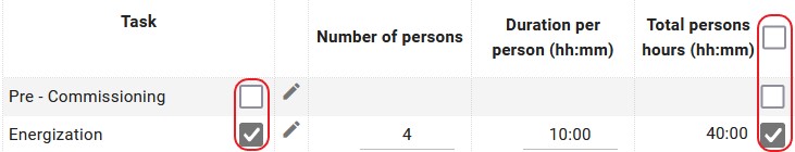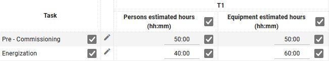 You can provide persons and equipment hours required to complete the task for given type of unit. The estimated hours represent the time required to complete the task for one unit of given type.